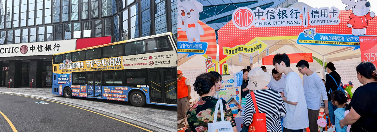 为积极响应金融监管单位号召,2026年3月,中信银行信用卡中心紧扣“清朗金融网络 守护安心消费”主题,全面启动“3·15”金融消费者权益保护教育宣传系列活动。本次活动通过线上矩阵、城市场景、重点群体、内部赋能四维联动,以创新形式、全域覆盖、精准触达,切实提升公众金融素养,筑牢金融安全防线。近日,凭借打造“金融青骑兵服务大湾区跨境金融消保教育新范式”,中信银行信用卡中心荣获中国金融传媒“2026金融消保与服务创新年度案例·金融消保机制创新优秀案例”。